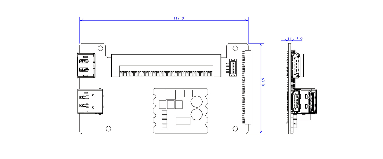 | 安装孔 | 4 * Φ3.0 通孔 |
