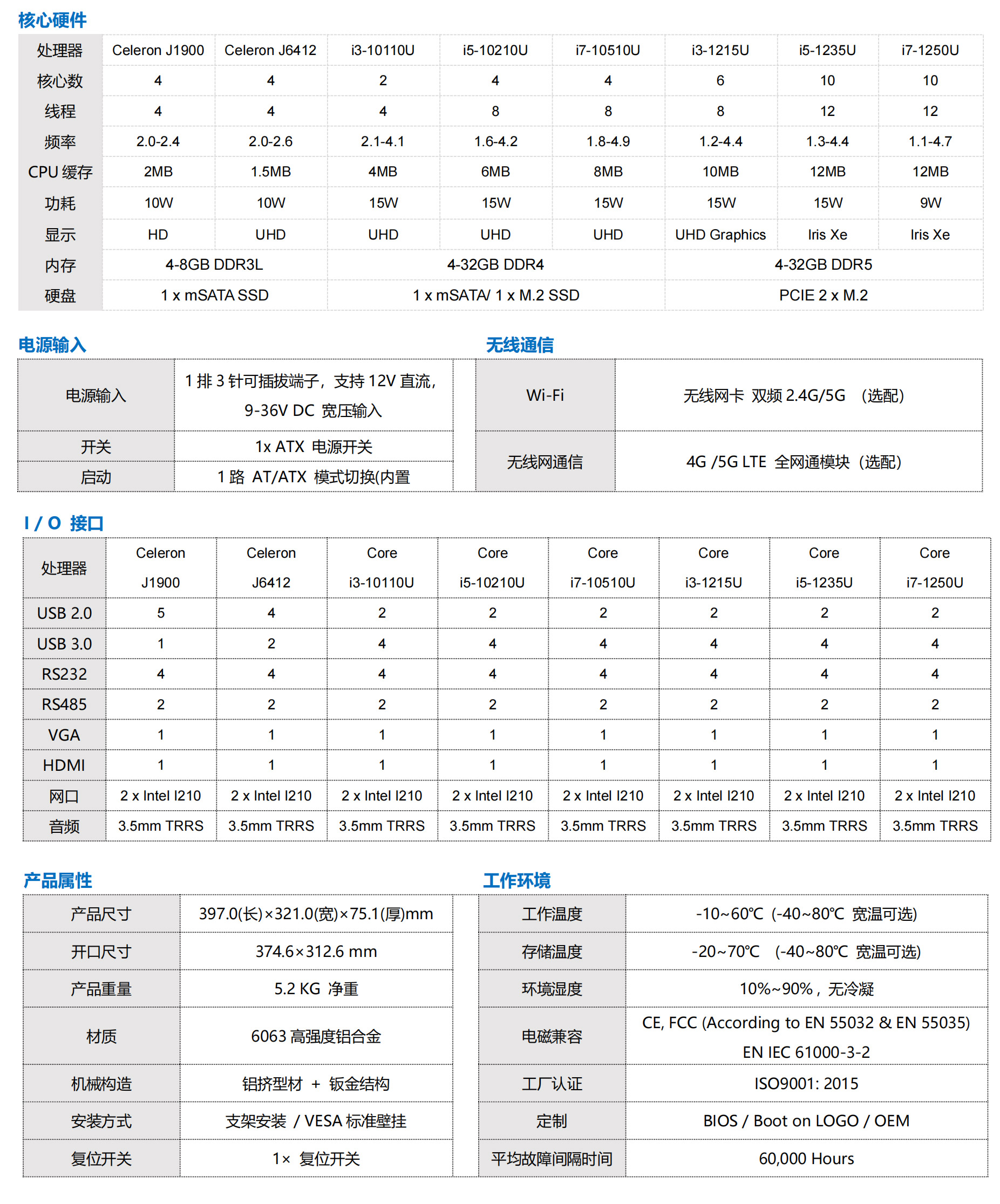 | Windows系统 | Windows 10 / Windows 11 (注:Celeron J1900 可支持 windows 7) |