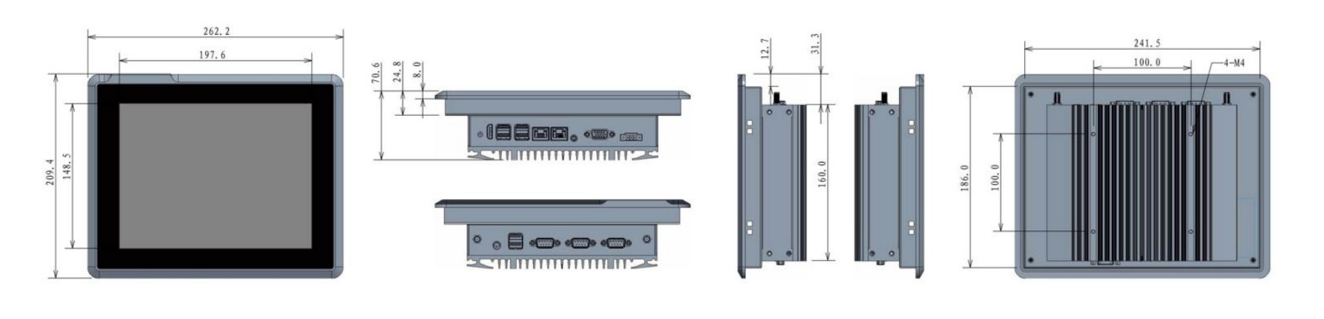 | WPC-S1021A-E | Intel® 12th Gen Core™ | 电阻触控 | 前面框铝合金环氧涂层 | 前面板 IP65 | 6× USB, 2 × GigaLAN,3 × COM | 检测设备控制 |
