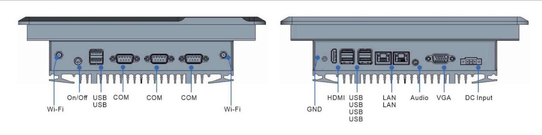 | WPC-S1061A-E | Intel® Celeron® J1900 | 电阻触控 | 前面框铝合金环氧涂层 | 前面板 IP65 | 6 × USB,2 × GigaLAN,3× COM | 小型设备控制 |